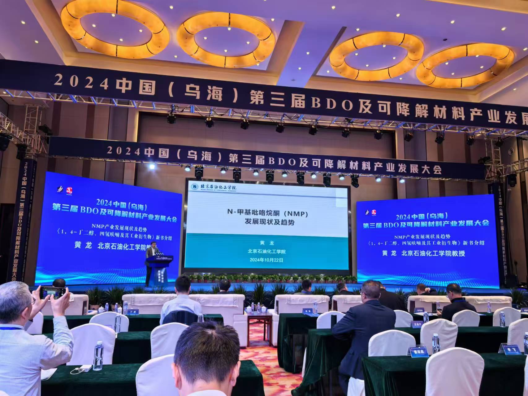 本屆大會由中國石油和化學工業聯合會主辦,烏海市人民政府支持,中國石油和化學工業聯合會化工新材料委員會、烏海市區域經濟合作局、烏海市工業和信息化局、烏海市科學技術局承辦,以“向新提質 賦能增效”為主題,邀請了中國工程院院士、大連理工大學化工學院高分子材料系教授、高分子材料研究所所長蹇錫高,中國科學院院士、纖維材料改性國家重點實驗室主任朱美芳,俄羅斯工程院院士、中國科學院理化技術研究所研究員季君暉在報告會作主旨演講。我校黃龍教授在大會上做了《NMP產業發展現狀及趨勢》的專題報告。