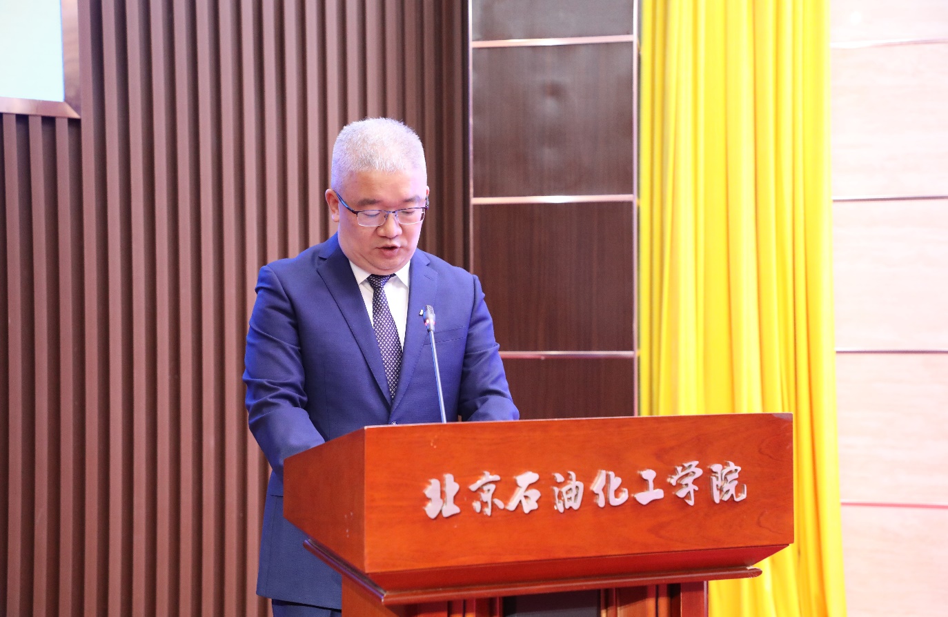 中國燕山石化公司黨委常委、副總經理趙喚群致辭。他談到北京石油化工學院與燕山石化攜手并進,堅持資源共享、優勢互補,共同見證了我國石油石化工業發展和能源革命的每一個重要節點,共同在推進關鍵技術開發征程中堅守科技報國理想。希望未來能夠持續深入校企戰略合作,為國家石化產業發展、智能時代能源大工業場景人才培養作出更大貢獻。