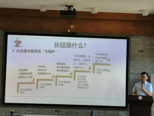 楊才林博士從“中國革命轉折”“世界戰爭奇跡”“人類偉大史詩”三個方面講述了“長征是什么”,深入淺出講解了如何形成對長征的準確認識和科學評價,可謂是一場精彩的示范課。他用鮮活的史實有力地回擊了“紅軍長征25000里造假論”“中央紅軍長征失敗論”兩個錯誤論調,引發大家對“中國共產黨的領導力”“中國共產黨精神譜系”和“走好新時代的長征路”的思考。他強調:“我們學習百年黨史,要認真總結中國共產黨的精神譜系,重返精神高地,賡續中國共產黨人的精神血脈,提振奮進新時代的精氣神。”通過楊才林博士的生動講述,大家對長征歷史、長征精神有了更全面、更深入的認識。