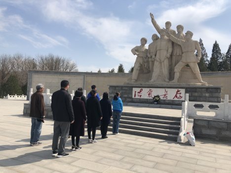 4月1日,坐落于清源公園的大興區烈士紀念廣場莊嚴肅穆,支部黨員手捧鮮花,緩緩拾階而行,向先烈們敬獻鮮花,感恩先烈、緬懷先烈、致敬先烈、寄托哀思,向烈士紀念雕塑鞠躬行禮,并懷著崇敬的心情瞻仰烈士墻。藍天白云,青松雕像,烈士紀念廣場記錄著抗日戰爭、解放戰爭、抗美援朝戰爭及和平建設時期,大興的革命烈士781人。黨員們憶往昔,飲水思源;慰忠魂,繼往開來。