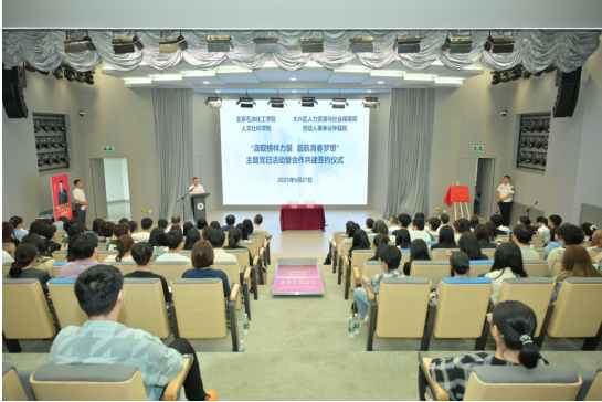 為充分發揮黨建引領作用,深化校地合作、產教融合,6月27日,人文社科學院與大興區人力社保局、勞動人事爭議仲裁院舉行“汲取榜樣力量,啟航青春夢想”主題黨日活動暨合作共建簽約儀式。大興區人力社保局黨組副書記、副局長、機關黨委書記鄭占峰,區人力社保局勞動關系黨支部書記、仲裁院院長李慧茁,仲裁院副院長張國華及人力社保局勞動關系黨支部黨員;北京石油化工學院發展規劃處處長、對外合作聯絡處處長何曉紅,教務處處長王騰,人文社科學院黨委書記王榮霞、黨委副書記兼副院長鄭影、副院長李思琦,以及人力資源管理系全體教師、學生黨員及入黨積極分子,人資系2023級本科生等140余人共同參加。