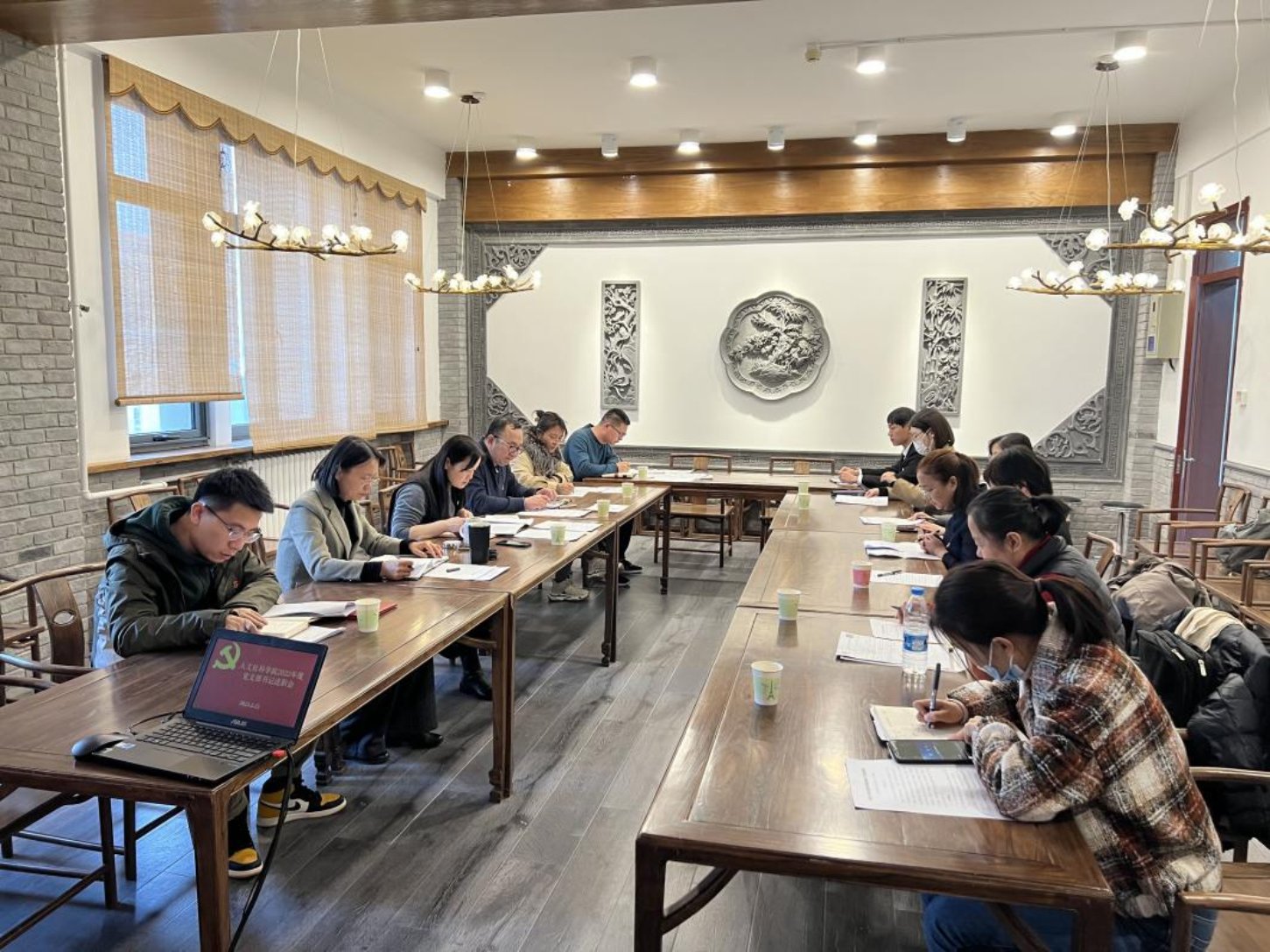 2023年2月21日,人文社科學院召開2022年度黨支部書記述職評議考核會。學院黨委委員、全體黨支部書記參加會議,校紀檢監察辦公室干部嚴鼎到會指導。會議由學院黨委副書記鄭影主持。