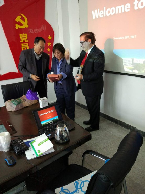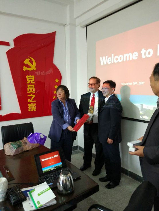 11月20日下午,雙方首次見面交流會在主樓1409房間舉行,交流會由人文社科學院閆笑非院長主持,學校校長助理、國際合作與交流處處長丁福臣應邀參加,學院楊鐘紅副院長,黃嵐、朱明兩位老師以及學生代表參加了交流會。 交流會上,丁福臣教授介紹了學校的整體發展情況,閆笑非教授介紹了人文社科學院的發展情況,George Fenich教授 和Kathryn Hashimoto副教授分別介紹了他們的工作情況和項目開展情況。之后,雙方圍繞兩校在旅游會展方面,本科生聯合培養的方式和可能性、教師們在研究和教學的合作機會、線上線下教育的優勢和經驗的借鑒學習等方面進行了充分的交流,也表達了深入合作的意愿并相互交換禮物。George Fenich教授 和Kathryn Hashimoto副教授將以專題講座、師生交流、學術沙龍等形式在人文社科學院開展為期一周的交流活動。