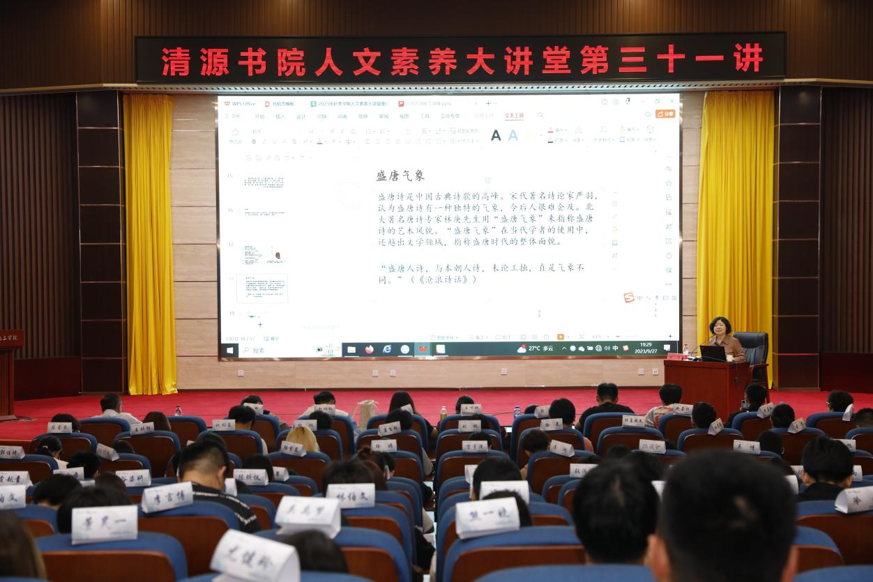 詩莫盛于唐,尤莫盛于盛唐。9月26日晚7點,第四季“清源書院人文素養大講堂”在我校清源校區致遠講堂正式拉開帷幕。中國社會科學院文學研究所古典文獻研究室主任劉寧教授應邀為我校師生帶來了題為“盛唐詩歌與盛唐氣象”的專題講座。講座由人文社科學院名譽院長、清源書院院長楊榮祥教授主持,我校200余名師生聆聽了講座。