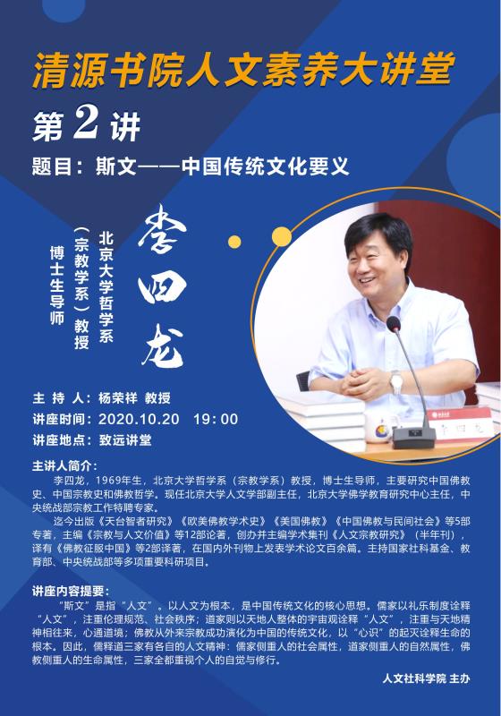 清源書院人文素養(yǎng)大講堂第二講:斯文--中國傳統(tǒng)文化要義 時(shí)間:2020-10-23 04:09:00 來源:人文社科學(xué)院辦公室作者:人文社科學(xué)院辦公室 字體: 【小】 【中】 【大】