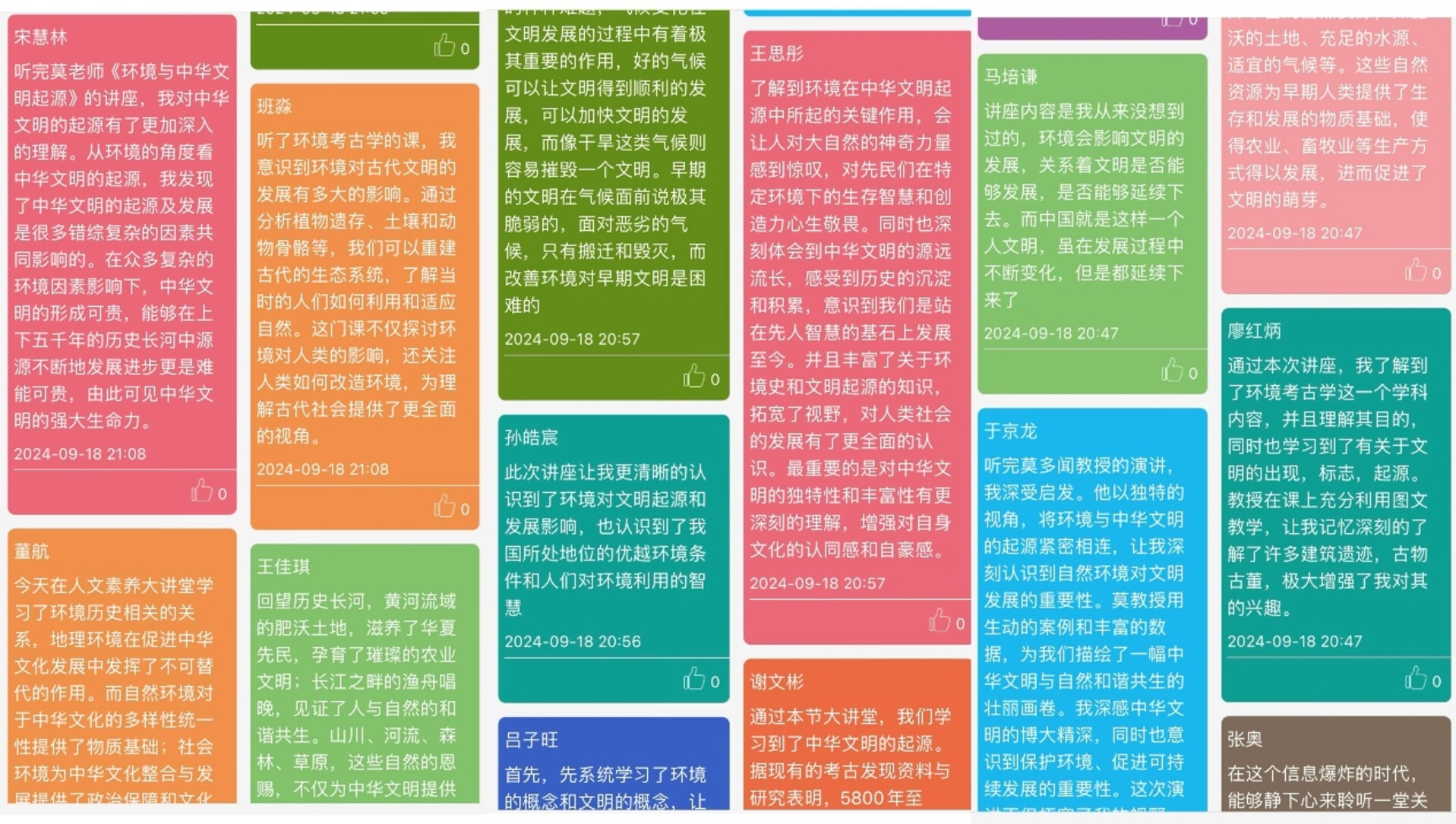 講座引發了同學們對中華文明起源和發展問題的深入思考,現場氣氛熱烈,同學們紛紛提問。在世界其他文明的歷史中,環境對文明造成了怎樣的影響?早期的中華文明如何在面對環境變遷,如洪水、干旱等自然災害時,展現出獨特的適應與應對策略?這些策略又是如何影響了文明的持續發展?莫教授對這些問題一一作了精彩解答。