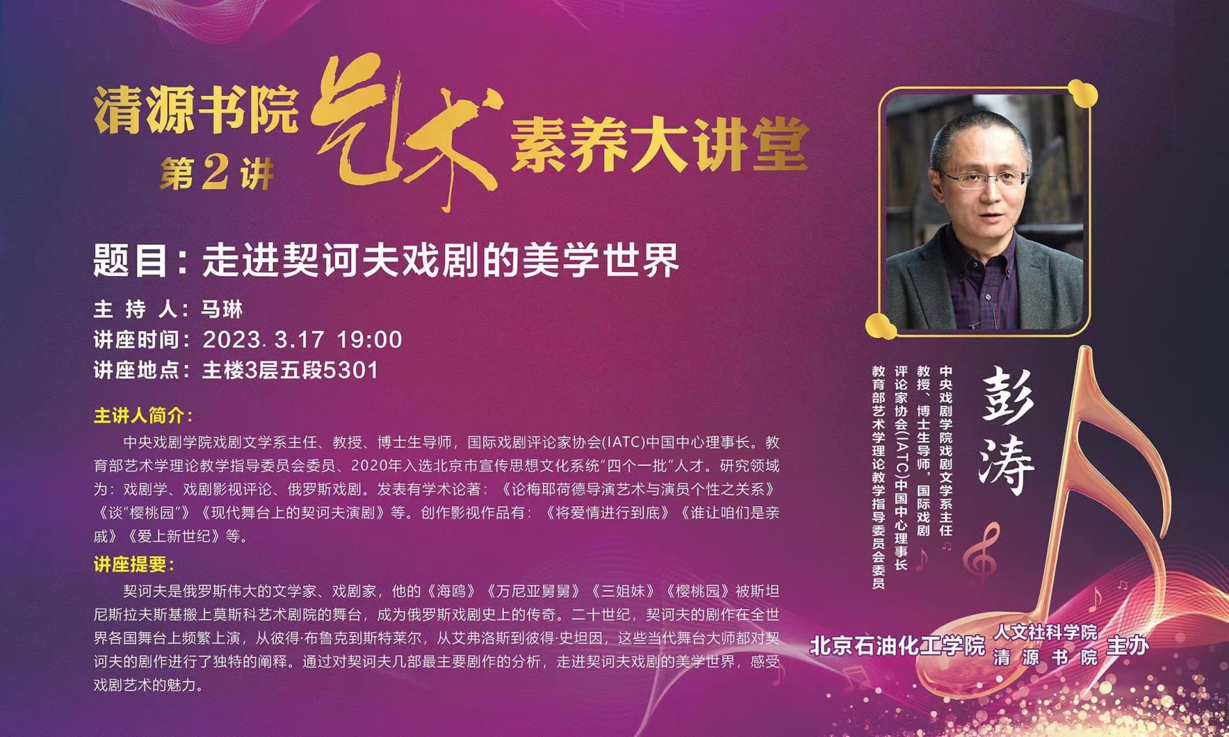 走進(jìn)契訶夫戲劇的美學(xué)世界--清源書院藝術(shù)大講堂第二講 時(shí)間:2023-03-22 04:10:00 來(lái)源:作者: 字體: 【小】 【中】 【大】 歡迎廣大師生參加!