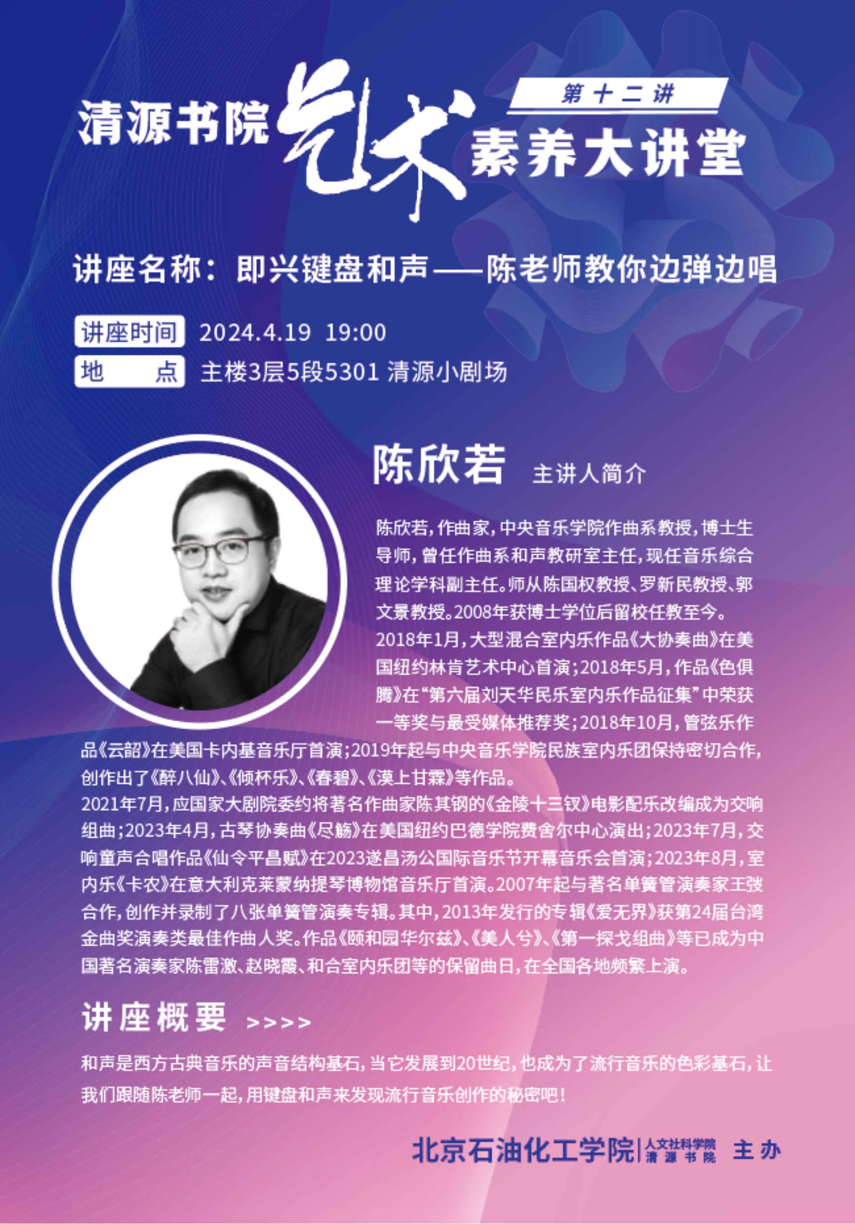 即興鍵盤和聲——陳老師教你邊彈邊唱——清源書院藝術素養大講堂第十二講開講