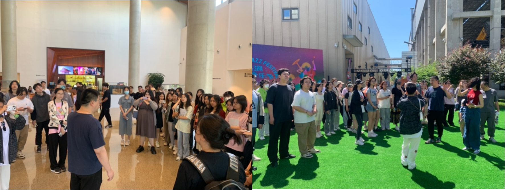 為拓寬會展專業學生藝術設計視野,深化專業素養,提升實踐能力,北京石油化工學院人文社科學院近日與國家大劇院臺湖舞美藝術中心達成合作,共同策劃了一場別開生面的藝術空間體驗活動。在人文社科學院常曉庚老師的帶領下,會展專業2023級68名學生走進國家大劇院臺湖舞美藝術博物館,親身參與感受臺湖爵士音樂節現場活動。國家大劇院舞臺技術部副部長許航軍、國家大劇院臺湖舞美藝術中心綜合管理部副部長饒紫卿熱情接待了我校師生一行。學校教務處副處長崔麗敏、人文社科學院副院長王國洪出席了活動。