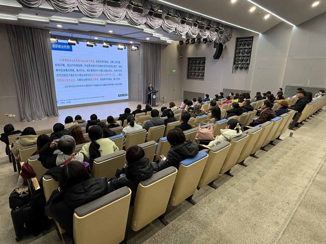 為了進一步加強家校之間的溝通與合作,共同關(guān)注和促進畢業(yè)生高質(zhì)量充分就業(yè), 12月13日,人文社科學(xué)院在主樓清源劇場成功舉行2025屆本科畢業(yè)生家長會。學(xué)院黨委副書記兼副院長鄭影、人力資源與公共管理系主任李向前、人力資源管理專業(yè)責(zé)任教授張君、旅游管理專業(yè)責(zé)任教授張傳統(tǒng)、會展專業(yè)責(zé)任教授陳一愚、負(fù)責(zé)就業(yè)工作的輔導(dǎo)員朱明和2025屆畢業(yè)生班主任及畢業(yè)生家長等100余人參加了會議。
