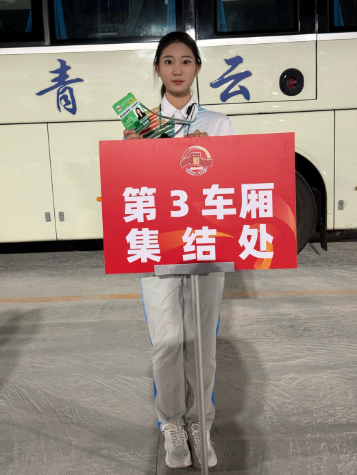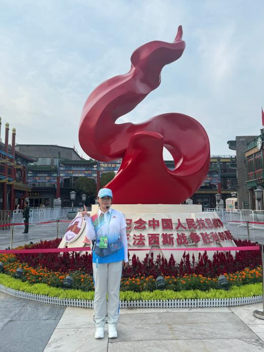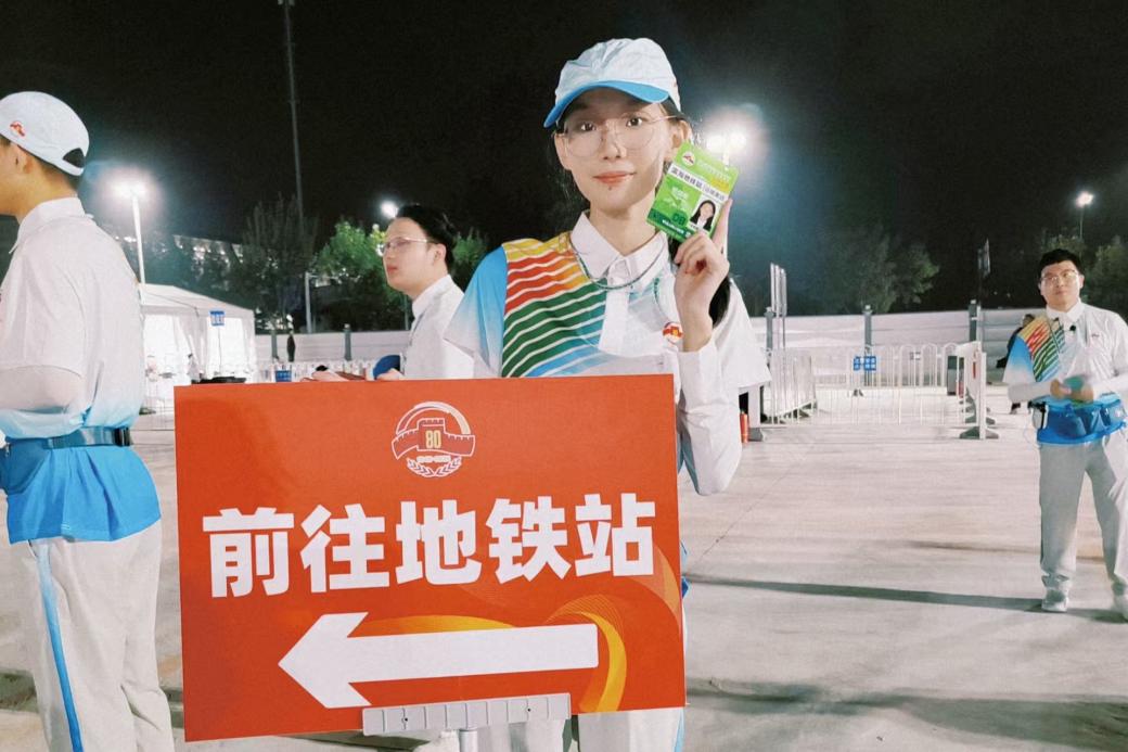 旅232李卓洋:“在紀(jì)念中國人民抗日戰(zhàn)爭暨世界反法西斯戰(zhàn)爭勝利80周年大會中,作為一名在國博北觀禮臺口引導(dǎo)崗的志愿者,我深感榮幸。在培訓(xùn)中,我們學(xué)習(xí)崗位服務(wù)技巧和服務(wù)禮儀,力求用最貼心的服務(wù)保障觀禮秩序。服務(wù)期間,積極為觀禮人員提供引導(dǎo),耐心解答問題,用實(shí)際行動踐行志愿服務(wù)精神。當(dāng)受閱方隊(duì)昂首走過,祖國的強(qiáng)大令我無比自豪。今后,我將帶著這份感動與責(zé)任傳承抗戰(zhàn)精神,以更飽滿的熱情投入學(xué)習(xí)生活,用實(shí)際行動為中華民族偉大復(fù)興貢獻(xiàn)青春力量。”