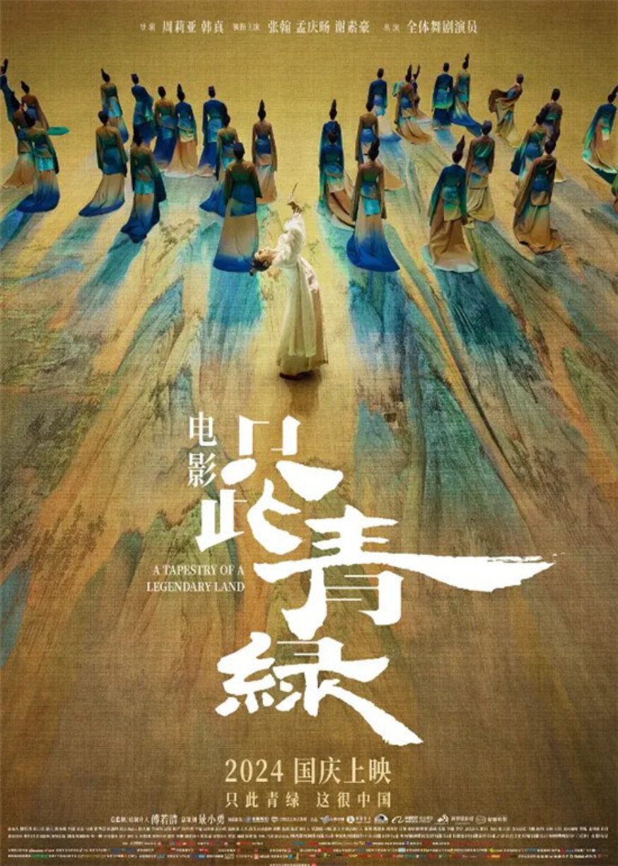 電影《只此青綠》,靈感汲取自中國十大傳世名畫之一的《千里江山圖》影片以畫中主色調青綠為視覺線索,探究畫作形成所需的篆、絹、顏料、筆、墨等材料和工具的制作工藝,深度提煉并展示多項中國傳統非遺技藝,生動展現了《千里江山圖》千年不褪的色彩、無數勞動者的匠心創造以及一代代的文物保護工作者的接續守護,共同繪就了一幅極具中國美學理念和民族精神的畫卷。