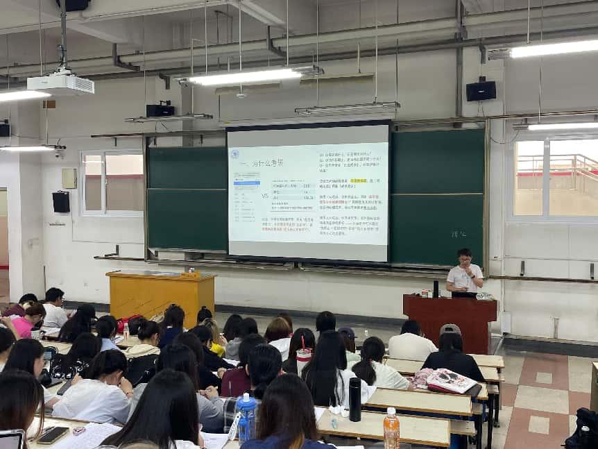 為了進(jìn)一步激發(fā)學(xué)生考研熱情,促進(jìn)考研升學(xué)、拓寬高質(zhì)量就業(yè)渠道,人文社科學(xué)院2025年5月27日下午在教101和教103召開2026年考研宣講動(dòng)員暨經(jīng)驗(yàn)交流會(huì)。碩士生導(dǎo)師葛靜茹副教授、輔導(dǎo)員竇錚、王崢和2025年考研成功學(xué)生代表李緣緣、沈強(qiáng)以及2022級(jí)全體學(xué)生參加了活動(dòng)。