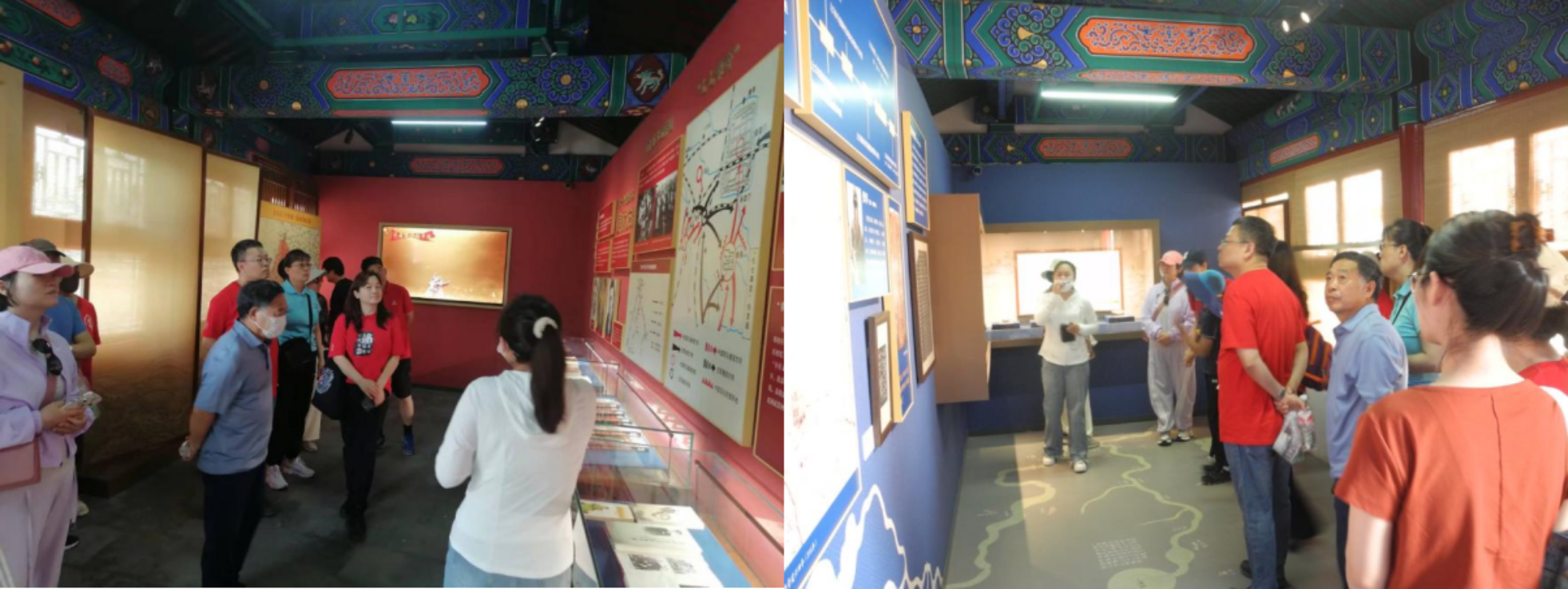團河行宮工作人員向黨員們介紹了行宮的具體概況,帶領大家參觀了燕京八絕、北京南海子苑囿文化、大興歷史文化等專題展覽,博物館內一件件文物,無言地訴說著大興的過往;團河保衛戰、安定保衛戰......圖文并茂地展示出大興人民的英勇;科技與傳統的結合,再現了大興的昔日美景。黨員們一邊走一邊看,沉浸式感受大興深厚的文化底蘊和璀璨的革命傳承。