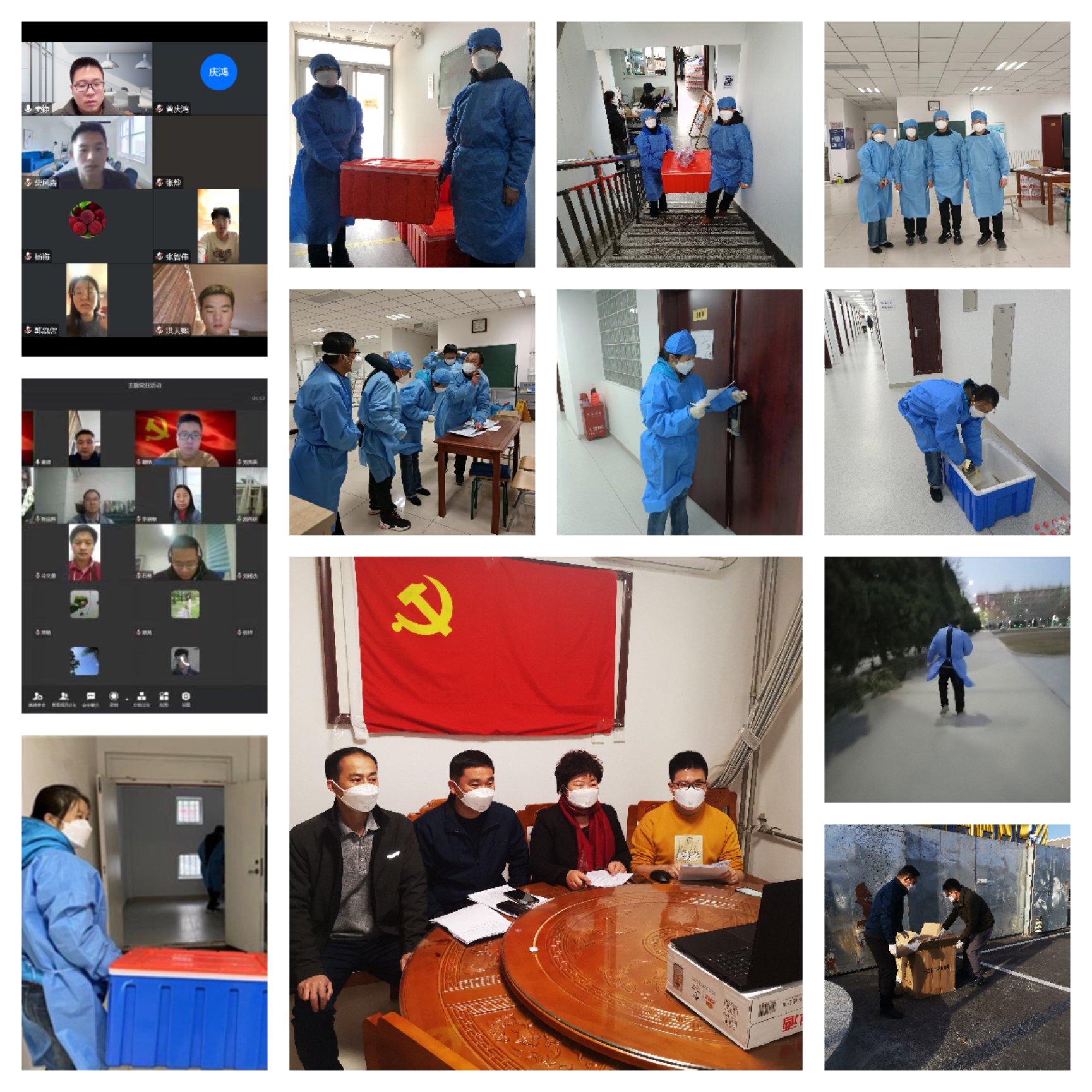 行動實踐,大白小藍顯擔當。人文社科學院領導班子成員一直堅守學校,靠前指揮。師生黨員志愿者就地化身“大白”“小藍”,以快制快,有序開展疫情防控工作。輔導員朱明駐地康莊校區,臨危受命,擔任“戰時”樓長;輔導員竇錚奔赴亦莊七天酒店,堅持與隔離同學在一起,臨時黨支部筑牢戰疫堡壘。學院辦公室主任魯愛梅丟下兩個年幼的孩子,驅車五十余公里,進駐校園抗疫。李蔚老師、陳寶生主席在社區解除隔離后,主動請纓,立即加入抗擊疫情志愿者隊伍,往返于學生宿舍樓,為學生用餐、檢測做好服務保障。鮮紅的黨旗高高飄揚,疫情面前,讓師生永遠可以安心、放心。潔白、純藍的防護服,成了志愿者們的堅強鎧甲,匆匆閃過的身影也成了校園、樓道里最美的風景。