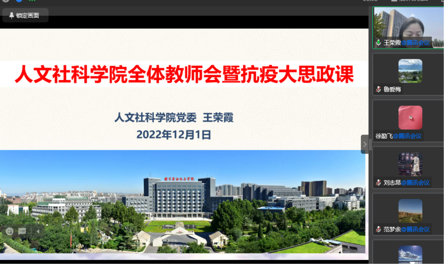 思想引領,團結一心共抗疫。學院黨委及時學習傳達學校疫情防控領導小組會議精神,人文社科學院師生統一思想,積極響應,第一時間投入抗疫行動。12月1日,人文社科學院召開全體教師會、班主任會、黨支部書記會,王榮霞書記主講《疫情防控:我們怎么看、怎么辦?》大思政課,并對特殊時期做好疫情防控、安全穩定、意識形態工作做進一步部署。隨后,各黨支部書記、班主任,通過支部大會、主題開班會,將抗疫大思政課傳送到學院每位師生,引領大家團結一心,共同抗疫,爭取早日取得勝利。