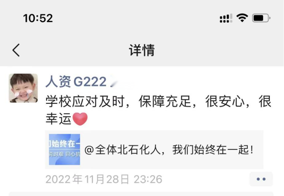 戰疫到底,我們一定能贏。疫情就是戰場,沒有任何力量能夠阻擋石化人前進的步伐。只要我們堅定信心、眾志成城,在疫情面前不退縮,在關鍵時刻沖在前,我們就一定能打贏這場疫情防控阻擊戰。我們相信,冬盡春來,戰疫必勝!——王禹中