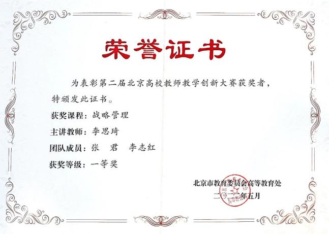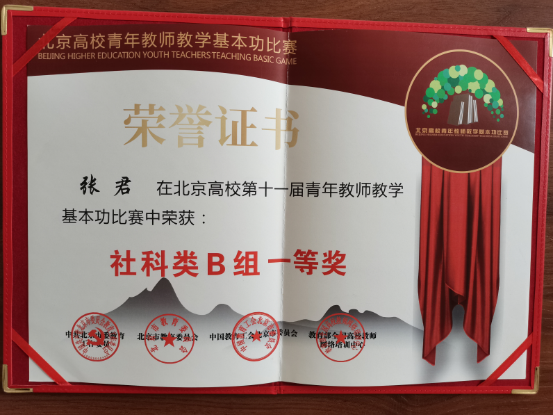 北京高校第十一屆青年教師教學基本功比賽(社科類B組)一等獎、最佳教案獎、最佳教案獎、最受學生歡迎獎、最佳教學回顧獎 |