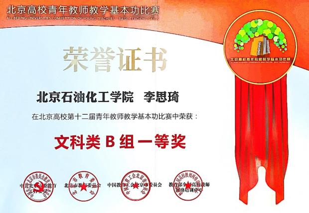 北京高校第十二屆青年教師教學基本功比賽(文科類)一等獎、最佳教案獎、最佳現場展示獎 |