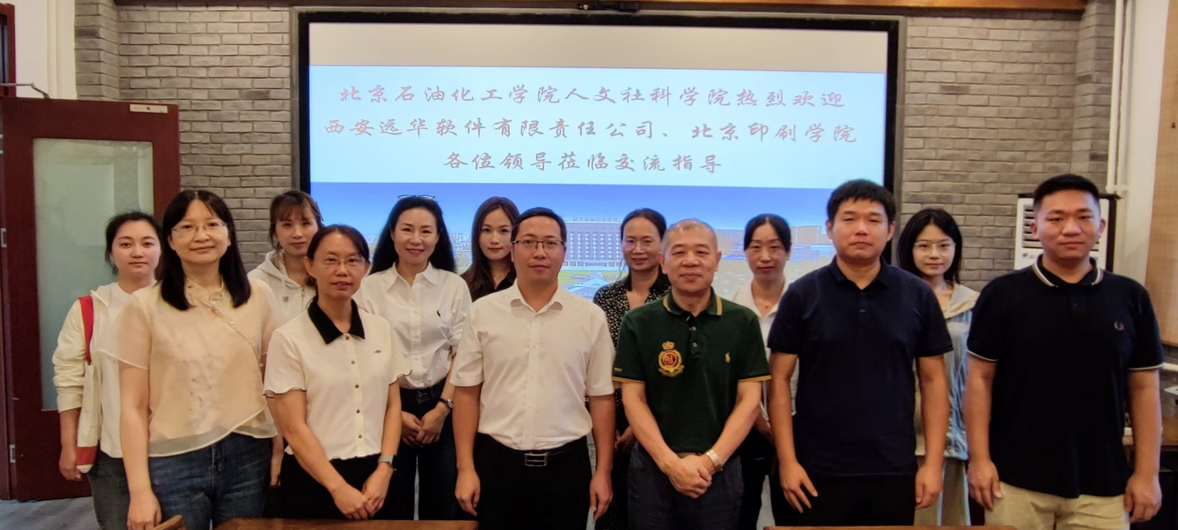 9月11日下午,北京印刷學院新聞傳播學院副院長谷征、西安遠華軟件有限責任公司董事長呼慶源等一行到訪人文社科學院,就開展校企合作、校校合作,攜手推進會展教育發展、創新會展教育模式深入交流。人文社科學院副院長王國洪及會展專業教師楊鐘紅、黃嵐、陳巧、尤可可等熱情接待來訪一行,北京印刷學院新聞傳播學院廣告系與新聞系黨支部書記郭瑾、廣告系副主任唐鈺龍,及西安遠華軟件有限責任公司高管金濤等一同參加交流。