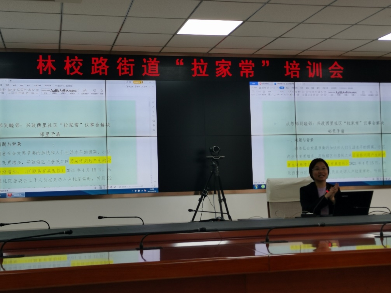 (龍菲老師為林校路街道進行“拉家常”培訓)