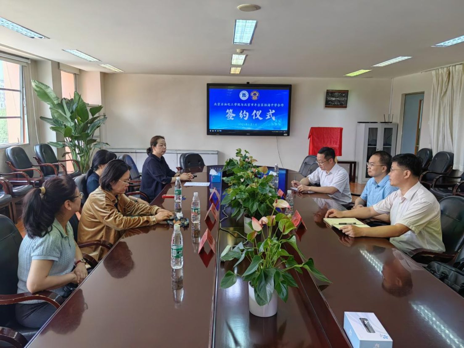 隨后,吳小華主任、楊梅校長作為代表,共同簽署《北京石油化工學院人文社科學院和北京市豐臺區怡海中學合作備忘錄》。