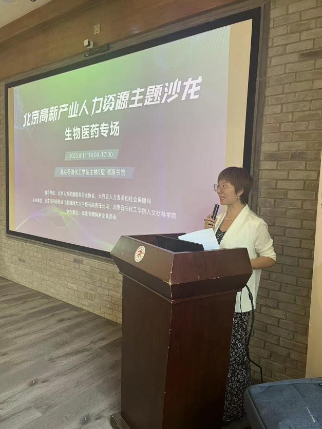 8月11日,由北京人力資源服務行業協會、大興區人力資源和社會保障局的指導,北京市興辰職業技能培訓大興學校有限責任公司和北京石油化工學院人文社科學院共同主辦的“北京高新產業——生物醫藥專場人力資源主題沙龍”在人文社科學院清源書院順利開展,在下,20余家大興區生物醫藥企業的人力資源部門代表參會。活動由北京市興辰職業技能培訓大興學校李海霞校長擔綱主持,旨在推進校企合作,進一步助力解決高新技術企業發展面臨的人力資源難題、建立高素質人力資源隊伍、樹立行業領先地位。