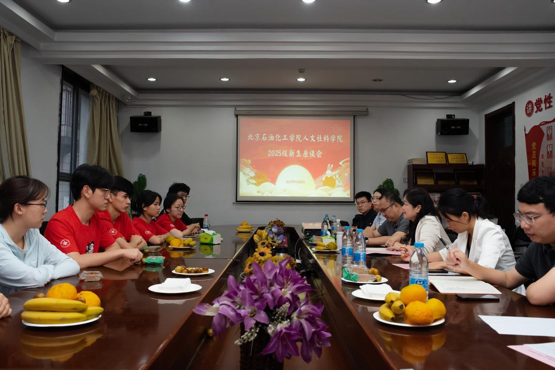 金秋送爽,丹桂飄香。在中華民族傳統節日中秋節來臨之際, 9月28日,人文社科學院在房山校區組織2025級新生座談會。學院黨委書記王榮霞,黨委副書記兼副院長鄭影,辦公室主任魯愛梅,輔導員朱明、竇錚、王崢、馬勝凱與學院十余名非京籍學生代表歡聚一堂,共話中秋情思,共聊大學成長,現場暖意融融、笑語不斷。