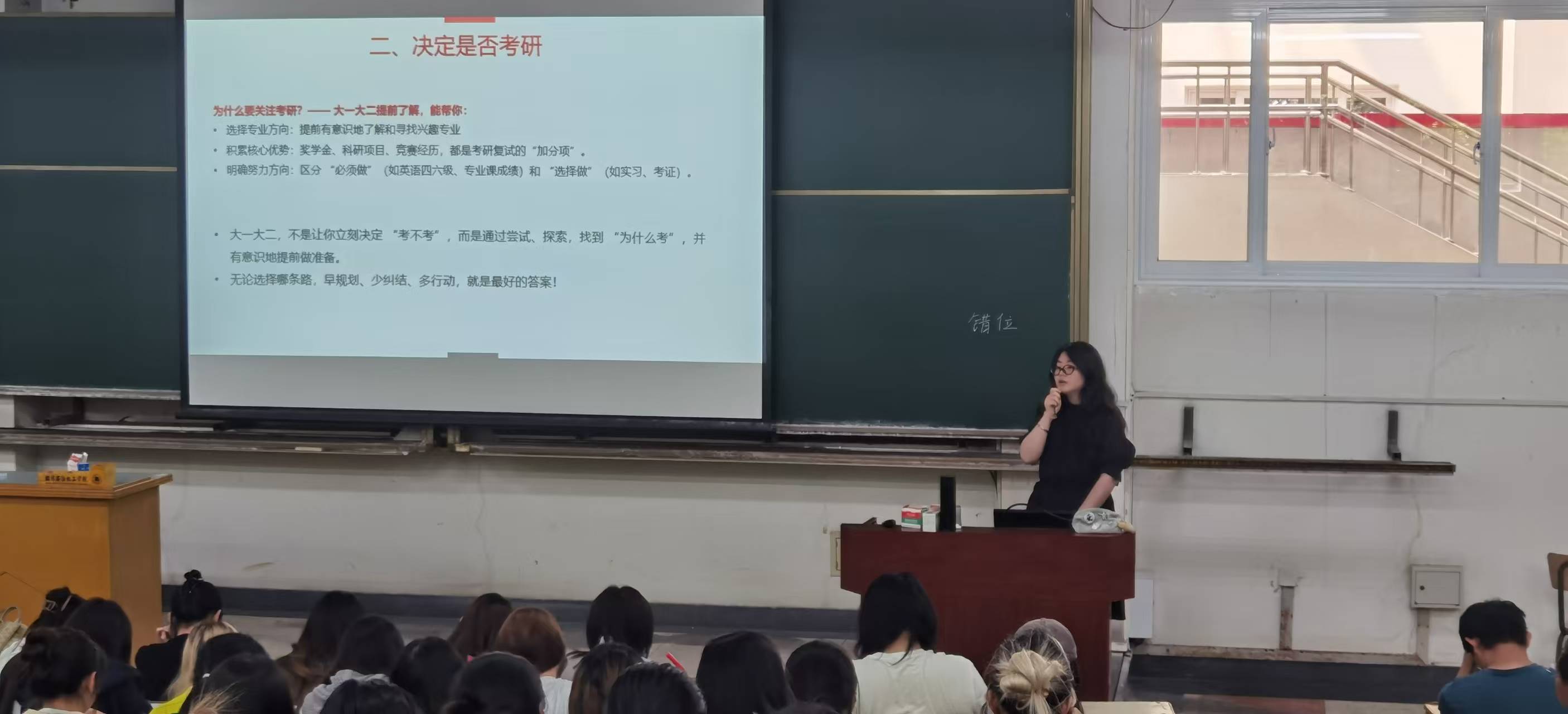 為了進一步激發(fā)學生考研熱情,促進考研升學、拓寬高質量就業(yè)渠道,人文社科學院2025年5月27日下午在教101和教103召開2026年考研宣講動員暨經(jīng)驗交流會。碩士生導師葛靜茹副教授、輔導員竇錚、王崢和2025年考研成功學生代表李緣緣、沈強以及2022級全體學生參加了活動。