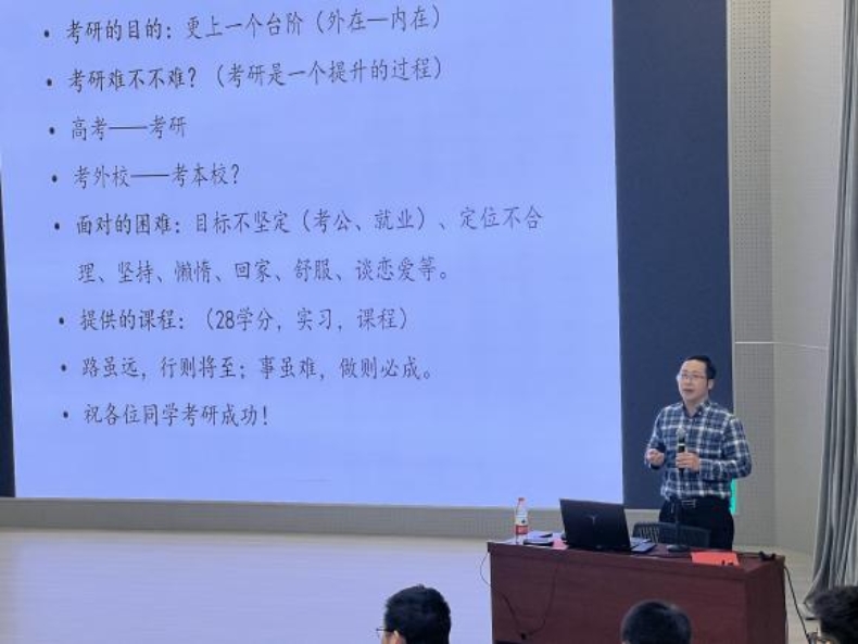 學院楊鐘紅和王國洪副院長分別從學院對學生考研的支持和服務進行了介紹,鼓勵同學們要有信心考研,也表示學??梢詾橥瑢W們的考研工作保駕護航。
