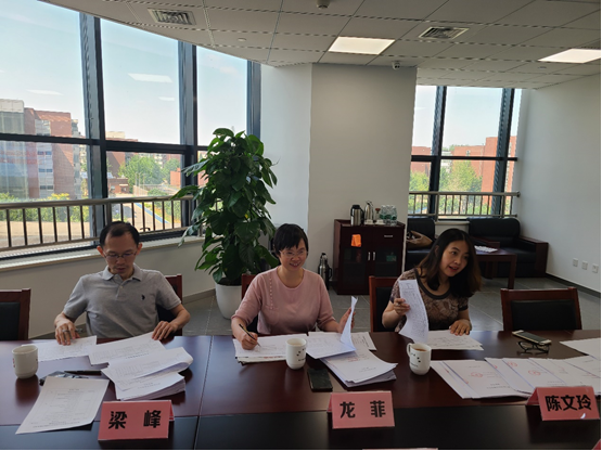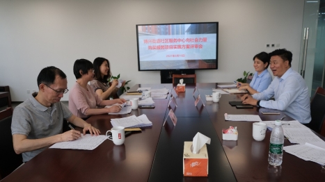 博興街道社區服務中心負責人李曉宇、岳春莉,中國傳媒大學文化產業管理學院社會學系主任陳文玲教授,我校經濟管理學院梁峰博士一同參加評審會。