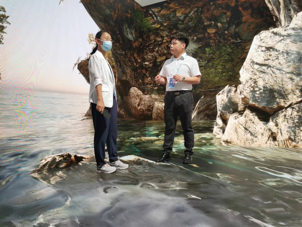 團隊成員還體驗了元宇宙展覽、XR交互體驗空間等新技術,就虛擬會展、沉浸式展覽等與展商進行交流。