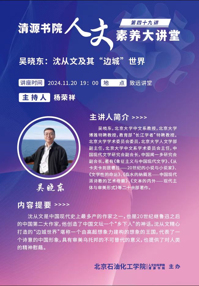 清遠書院人文素養大講堂第49講——沈從文及其“邊城”世界