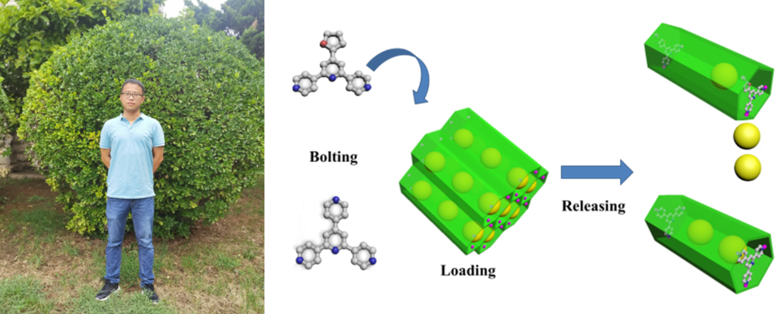 基礎(chǔ)化學(xué)教學(xué)與實(shí)驗(yàn)中心王浩副教授聯(lián)合南開大學(xué)許健教授通過選擇合適的“螺栓”配體對MOFs進(jìn)行后修飾,實(shí)現(xiàn)了對客體的控制釋放,相關(guān)研究成果撰寫的學(xué)術(shù)論文《Post-synthetic modifications of MOFs by different bolt ligands for controllable release of cargoes》,發(fā)表在國際知名化學(xué)期刊Chinese Chemical Letters (2024), doi: https://doi.org/10.1016/j.cclet.2024.109581 (SCI一區(qū)Top, IF=9.1)。北京石油化工學(xué)院為論文第一完成單位,王浩副教授為第一作者和通訊作者。該論文報(bào)道了一種K-Zn-MOF的合成方法與結(jié)構(gòu)特征,將其作為主體框架可以負(fù)載多種客體分子,隨后選擇了兩種尺寸不同的“螺栓”配體對MOF進(jìn)行封裝,實(shí)現(xiàn)了對客體分子的控制釋放。