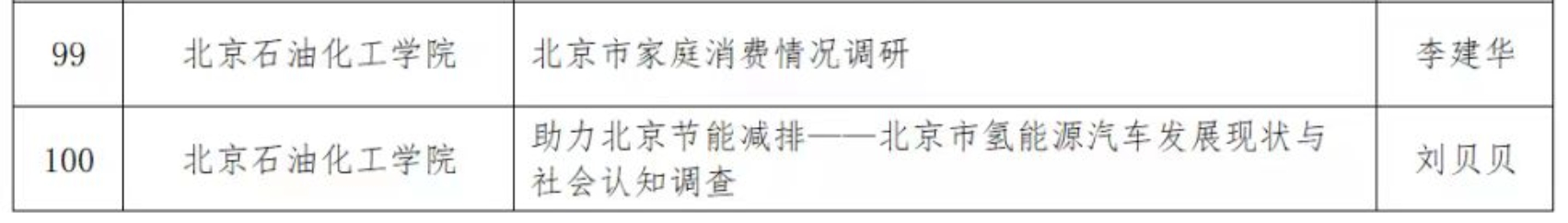 青年教師社會調研團隊項目分別是經濟管理學院劉貝貝主持的《助力北京節能減排——北京市氫能源汽車發展現狀與社會認知調查》和馬克思主義學院李建華主持的《北京市家庭消費結構現狀調查》。大學生社會實踐團隊項目分別是人文社科學院王靜主持的《“躬行踐履 青力振興”鄉村振興》和信息工程學院劉穎主持的《知識改變命運 科技鑄就夢想實踐團》。