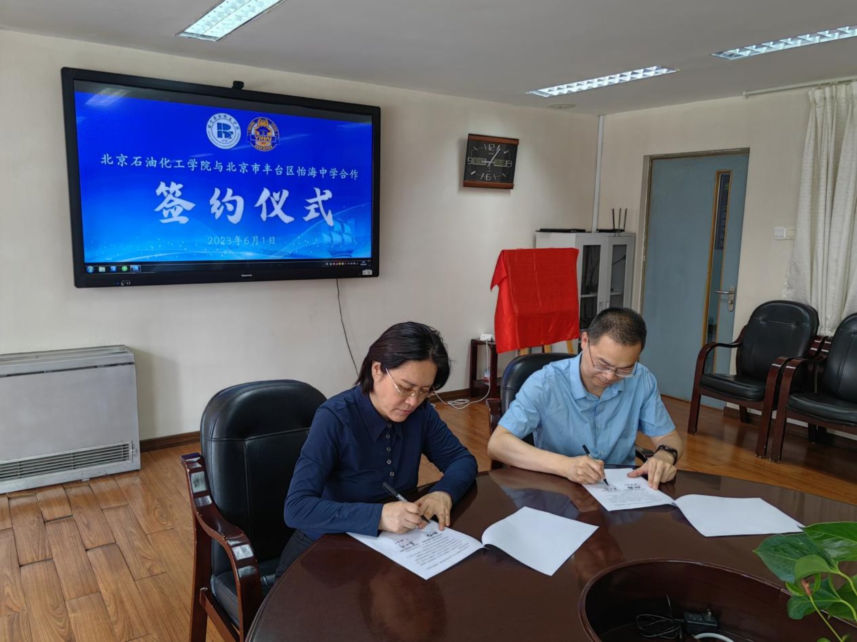 隨后,吳小華主任、楊梅校長(zhǎng)作為代表,共同簽署《北京石油化工學(xué)院人文社科學(xué)院和北京市豐臺(tái)區(qū)怡海中學(xué)合作備忘錄》并為北京石油化工學(xué)院優(yōu)質(zhì)生源基地揭牌。