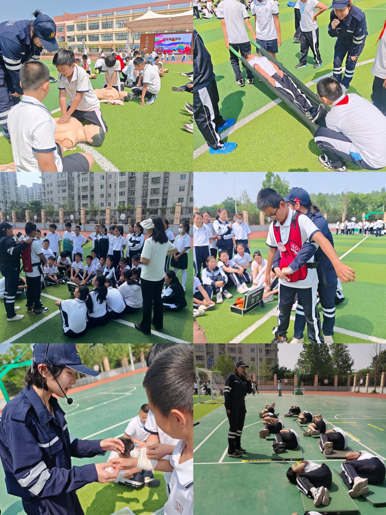 活動分成海姆立克、創傷包扎、繩索技巧、心肺復蘇、擔架制作及疏散逃生擁擠自護等六個專題。教官們先講解發生場景再重點演示對應的應急避險技能。之后,五年級的同學們在教官們指導下進行了實操演練和沉浸式體驗活動。活動中,同學們熱情高漲,踴躍參與,認真學習正確的自救互救方法,努力提升災害認知及應急自救能力。