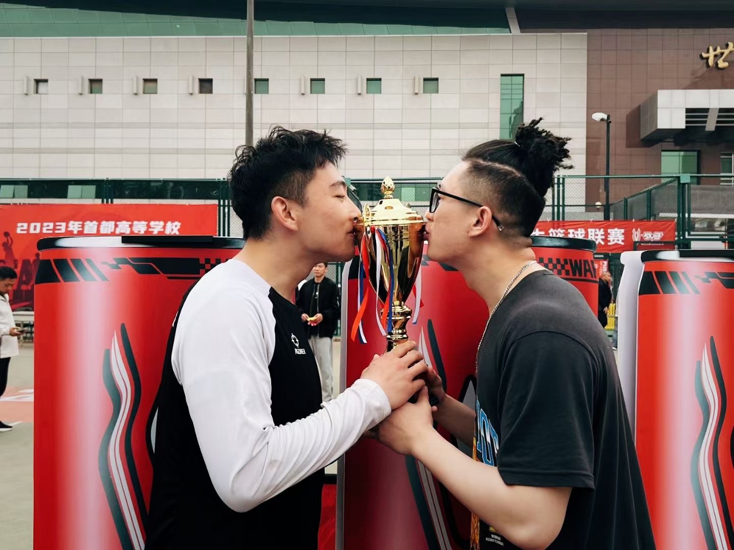 賽后,男籃隊員們和體育部老師們分享著勝利的喜悅。隊長吳拓達眼含熱淚親吻獎杯,他說三年的努力與堅持終于在退役戰這一刻收到回報!同時也要感謝劉羽豪學長對隊員們的悉心指教,助威團同學們的賣力吶喊以及學校、體育部領導、老師們的關心與支持,陳東教練的辛勤付出。