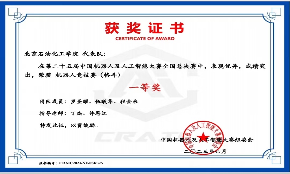 近日,我校工程師學院學子在第二十五屆中國機器人及人工智能大賽中喜獲佳績,共獲得北京市二等獎5項,三等獎7項,并通過北京市賽選拔推薦,最終在海南海口舉辦的全國競賽上獲得一等獎1項,二等獎1項,三等獎1項,優秀獎1項。