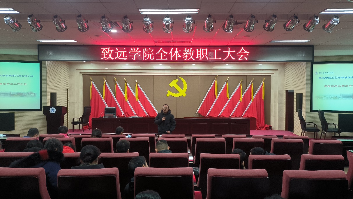 12月19日,致遠(yuǎn)學(xué)院在綜合實(shí)驗(yàn)樓一層報(bào)告廳召開(kāi)全體教職工大會(huì)。會(huì)議由院長(zhǎng)趙昶主持,學(xué)院領(lǐng)導(dǎo)班子成員及全體教職工參加會(huì)議。