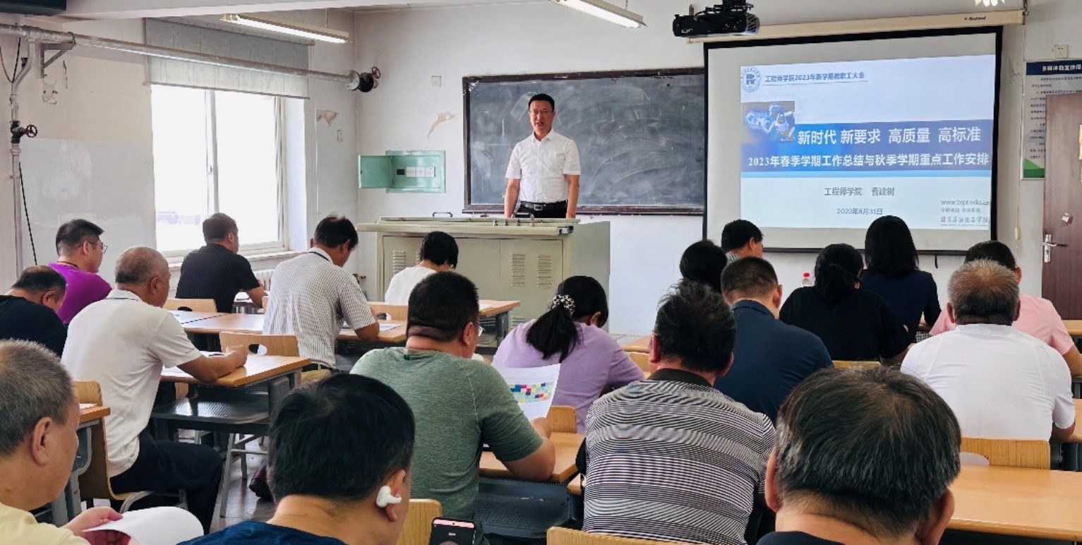 為確保新學期各項工作平穩、有序、高效開展,推進2023年秋季學期重點工作,8月31日上午,工程師學院在四層多功能教室召開全體教師大會。會議由工程師學院直屬黨支部書記張宏雷主持。
