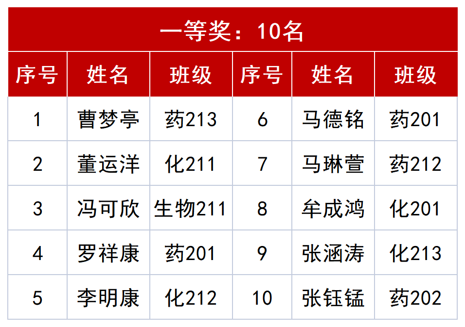 經過筆試和實驗操作的兩輪競賽,最后確定了北京石油化工學院第十一屆大學生化學實驗競賽獲獎名單,共產生一等獎10名,二等獎19名,三等獎16名。