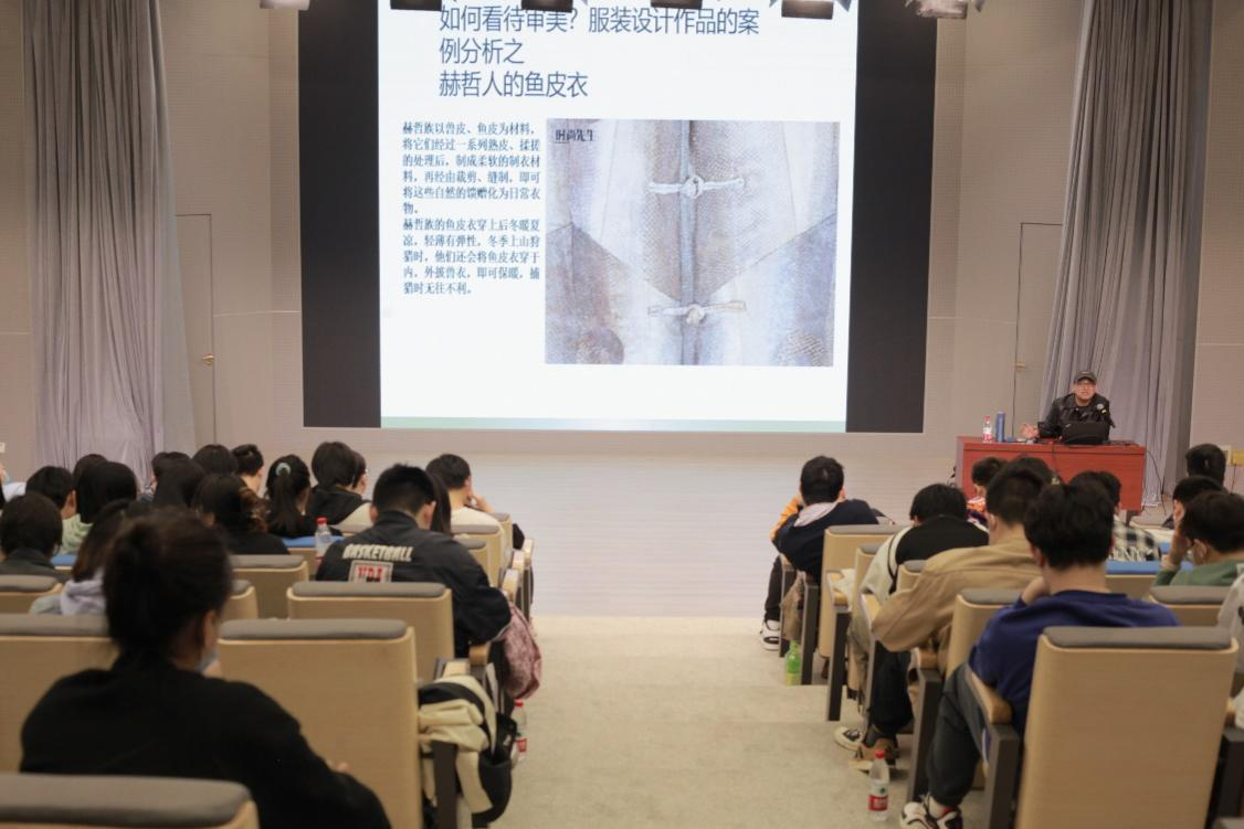 既然,服裝是具有審美屬性的,那么“如何看待審美呢?”張詠老師圍繞這個問題,帶領同學們展開了服裝設計案例分析。張老師關注的第一個案例是加布里埃·香奈兒,她是法國先鋒時裝設計師,法國頂級女性時裝品牌的創始人,她的創作飽含了女性審美與女性意識,是時尚與文化主題融合的最好體現。第二個案例是赫哲人的魚皮衣,赫哲族以獸皮、魚皮為材料,將它們經過熟皮、揉搓等一系列處理后,制成柔軟的制衣材料,再經由裁剪、縫制,即可將這些自然的饋贈化為日常衣物。這個過程是將零散的部件通過整合實現整體美、藝術美的過程。第三個案例是中國的高級定制服裝品牌——玫瑰坊,郭培是各路演藝名人的御用服裝師、北京奧運會頒獎禮服的設計師、是外國媒體眼中了不起的中國服裝設計師,他的設計十分強調服裝與人物形象、氣質的吻合。