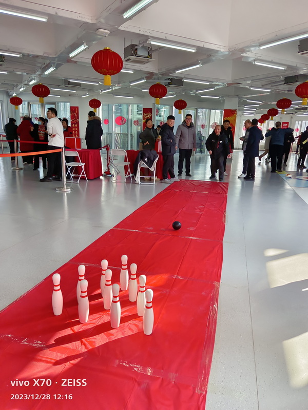 踏著皚皚的白雪,伴著冬日的暖陽,學校各部門約700余名教職工來到現場參加活動。本次活動設旱地冰壺、打保齡球、飛鏢、沙包擲準、投壺、套圈、謎語共7個活動項目。