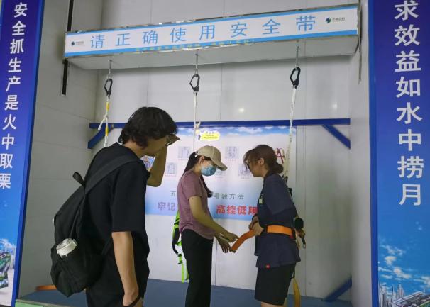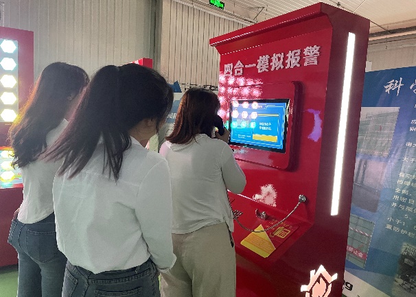 之后,同學們體驗了消防安全、用電安全、緊急救助、地震體驗、暴風雨體驗等融知識性、趣味性、互動性、科技性為一體的實踐項目。在消防滅火體驗區,同學們實踐了如何在不同場景下使用不同種類滅火器滅火,再通過消防知識搶答和消防標志識別,掌握了有效滅火的知識和操作要點。在隱患查找體驗區,同學們仔細觀察場景中的細節,尋找常見但易被忽視的安全隱患,并提出對應的改進措施,明顯提高了風險識別能力和解決問題的能力。在模擬火災時從濃煙環境下逃生的場景里,同學們排成兩列,彎腰捂鼻有序地通過狹窄黑暗的通道,不僅鍛煉了勇氣和毅力,也了解了緊急逃生路線選擇和自救技巧。在建筑安全區,通過安全著裝教育和安全帽撞擊體驗實驗,同學們學會了安全頭盔和安全帶的正確佩戴方法,知道了如何用四合一報警器報警,切實體會了“忽視安全抓生產是火中取栗,脫離安全求效益如水中撈月”的內涵。在用電安全區,同學們感受了小電流模擬觸電,實踐了觸電救助器及安全用電,深刻體會了正確的用電知識和工具選擇對保障人身安全的重要性。在暴風雨體驗區,同學們了解了惡劣天氣環境下的逃生及自救常識。在地震體驗區,通過VR技術模擬的地震場景,同學們體驗了地震來臨時的驚心動魄,學習了地震發生時的自救和救人技能。