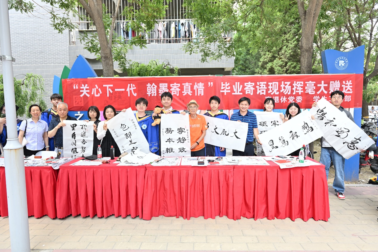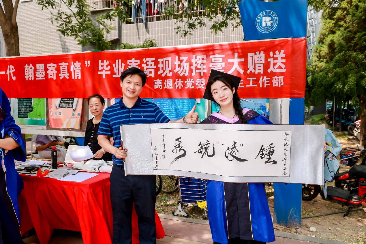 翰墨寄情,一幅幅作品,承載著母校對學子的一片深情,承載著老一輩教育工作者對晚輩的一片厚意!通過這種特殊的表達方式,對畢業(yè)同學寄予了深厚的期望和良好的祝愿,相信會對即將踏入人生新征程的畢業(yè)生們起到勵志圖強的作用,激勵他們畢業(yè)之后,努力工作,踏實做人,成就人生輝煌,為母校爭光,成為黨和國家的棟梁,為中國式現(xiàn)代化建設作出新貢獻。