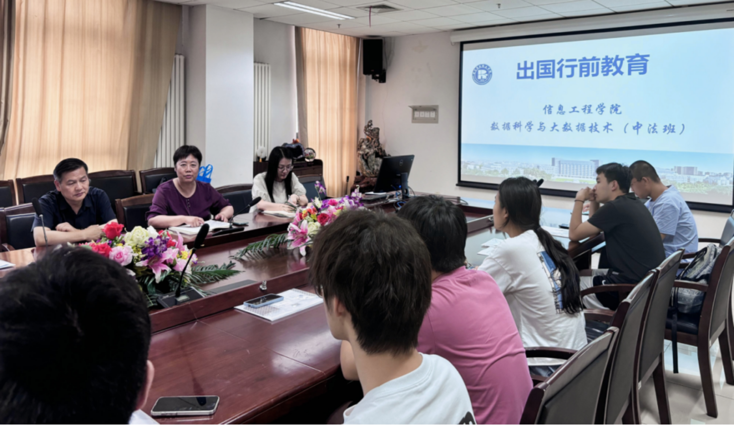 行前,信息工程學院舉行了數據科學與大數據技術(中法班)師生出國(境)行前教育培訓會。國際合作與交流處副處長黃建平、信息工程學院黨委書記李緒娜以及國家合作與交流處和信息工程學院相關老師為此行的26名學生做了全面的安全、紀律和學習教育。