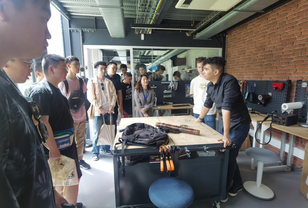 Efrei Paris國際處武興華老師和我校在此學習的畢業生帶領學生參觀了學校的教室、活動室、研究實驗室和創新創業實驗室等。在創新創業實驗室的一角,學生們偶遇了正專注于傳統木質樂器修復項目的學生,這一幕不僅展現了Efrei Paris學生對傳統文化的尊重與傳承,也激發了同學們對于跨學科融合創新的思考。