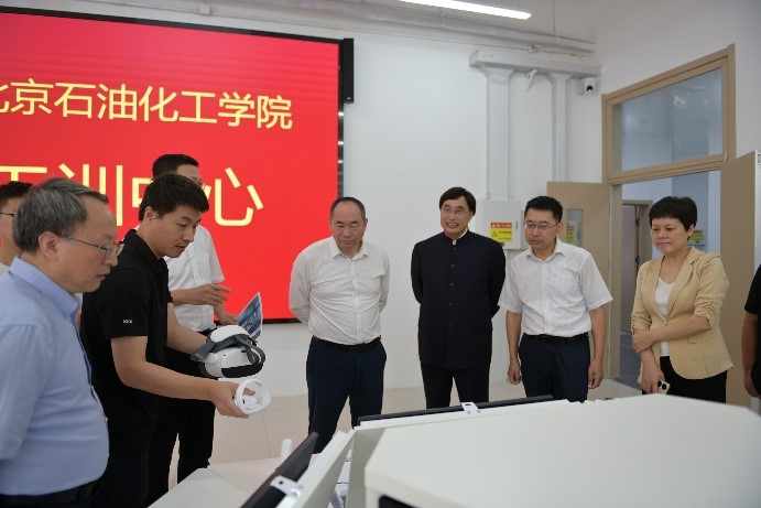 隨后,調研組來到學生綜合服務大廳,了解學校學生工作情況、學生心理輔導情況等,對學校開學準備工作給予充分肯定;觀看了學校介紹宣傳片,對學校加快轉型發展,服務首都和能源行業,扎實推進特色育人表示肯定。