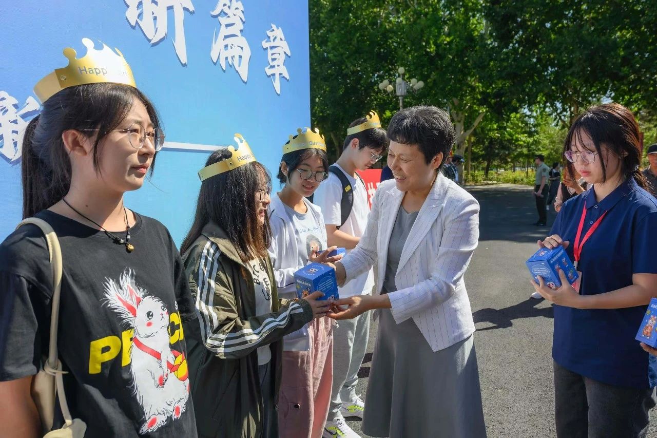 報到現場,黨委書記劉穎為張鵬宇等12位過生日的新生